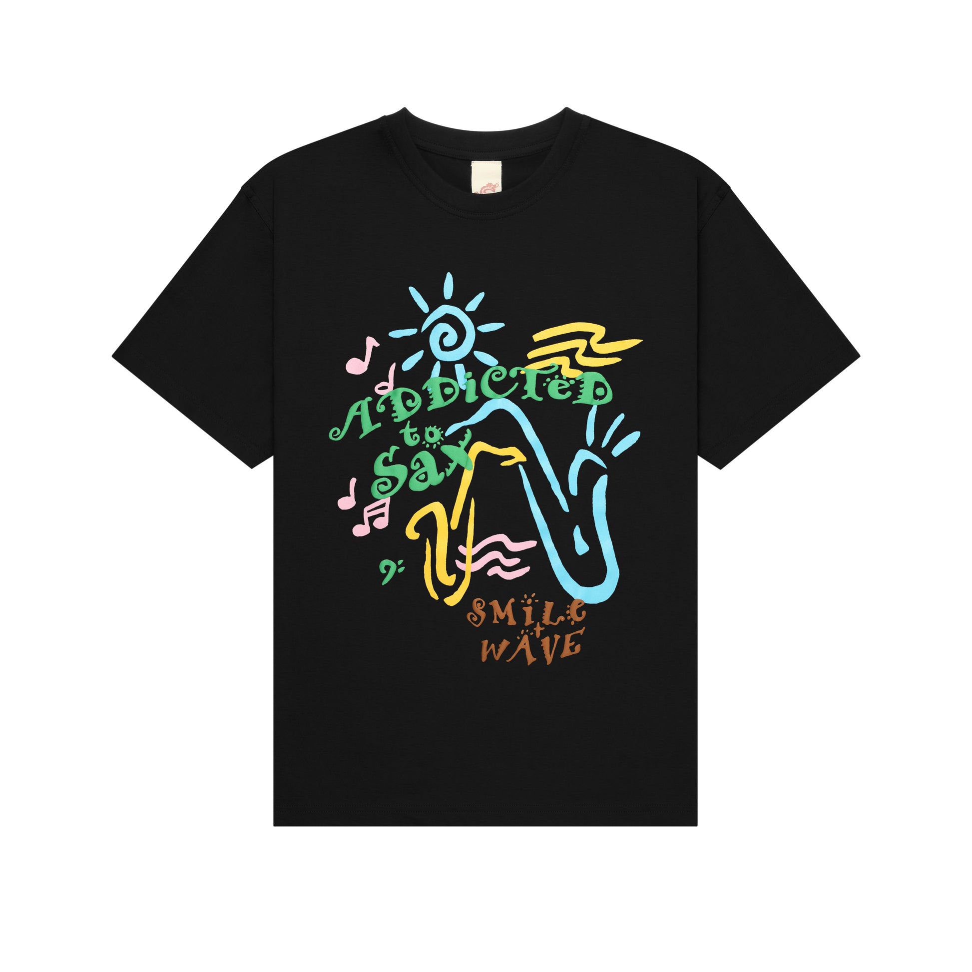 - 80’s inspired drawing screen printed on the front with text printed in puff print