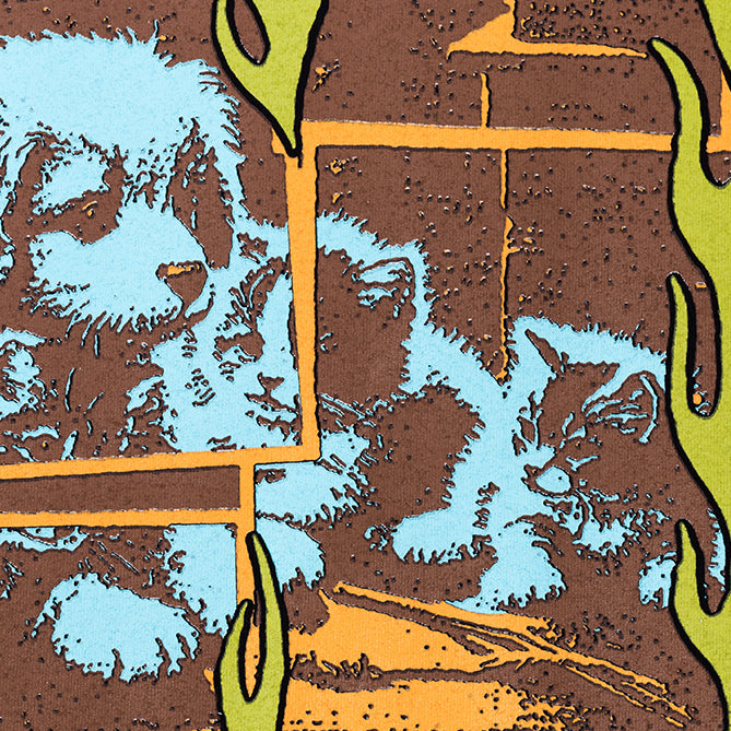 Large puppy and kitten design printed on the back