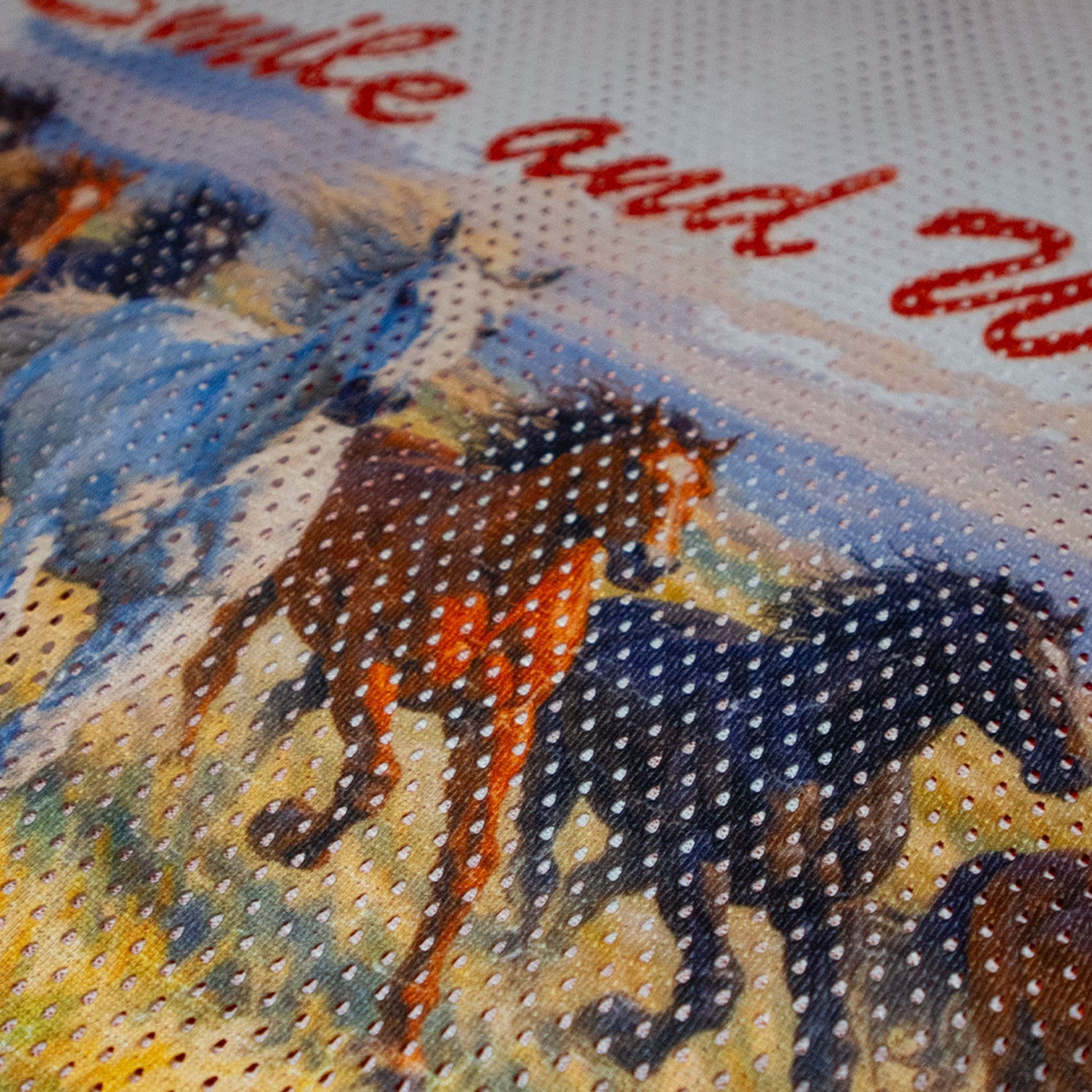 • Side 1 - horse graphic printed on front with our Smile and Wave label sewn near the hem.