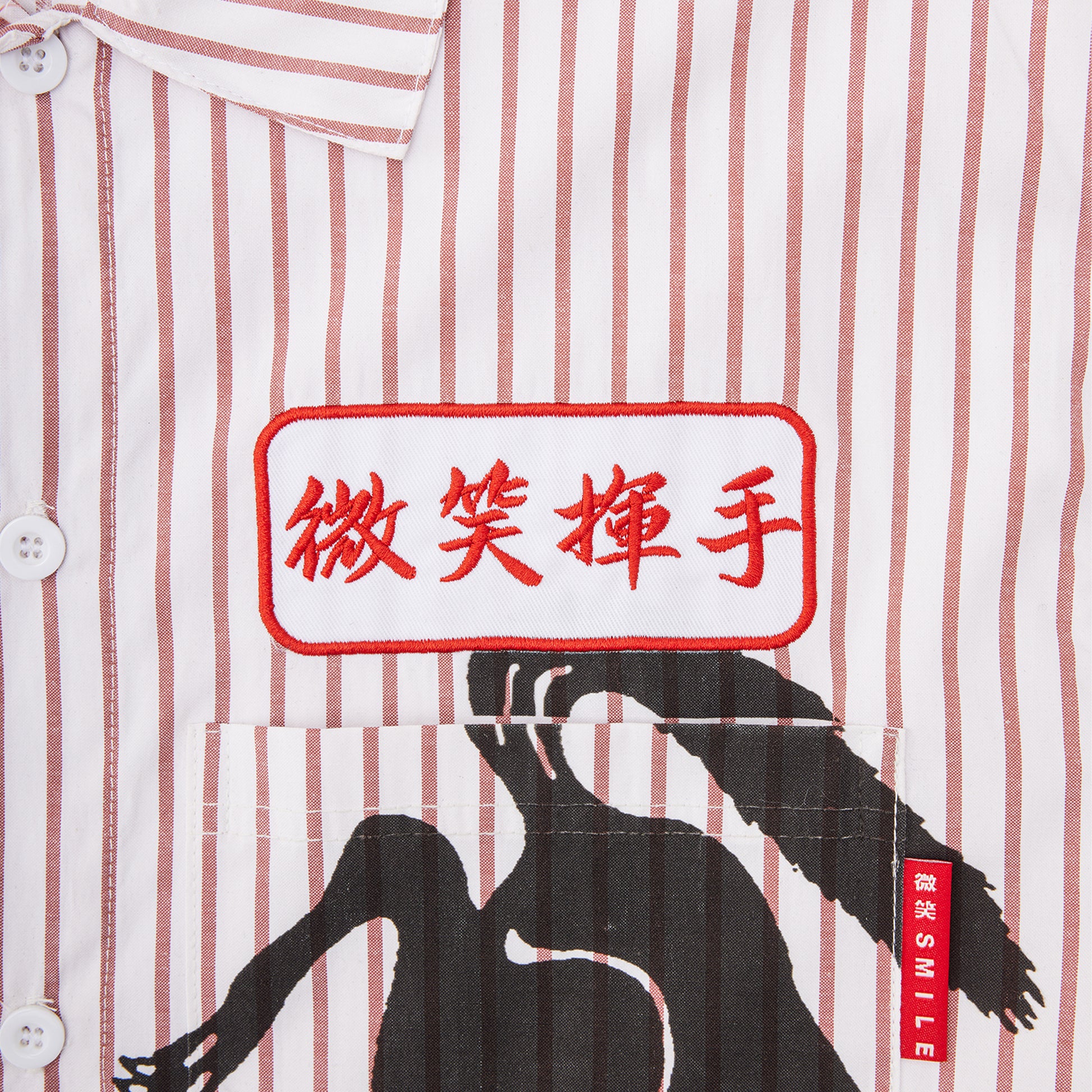 - Embroidered patch with Smile and Wave in Chinese above pocket